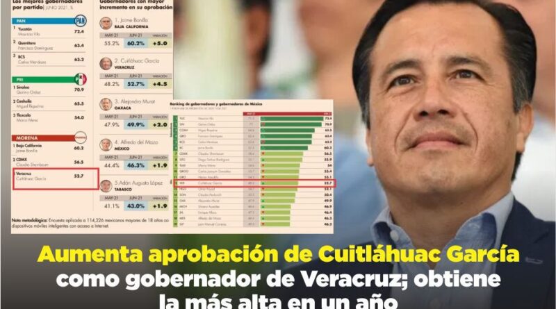 Aumenta aprobación de Cuitláhuac García como gobernador de Veracruz; obtiene la más alta en un año.