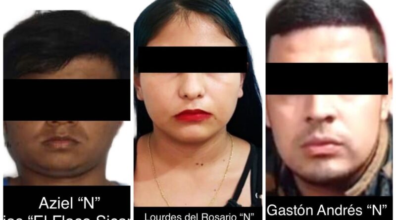 Minatitlán, Ver., 24 de mayo de 2021.- Por presunta portación ilegal de arma de fuego, delitos contra la salud y ultrajes a la autoridad, la Secretaría de Seguridad Pública (SSP), a través de Policía Estatal, detuvo a Gastón Andrés “N” alias “El Brujo”, Aziel “N” alias “El Flaco Sicario” y Lourdes del Rosario “N” alias “La Güera”, supuestos integrantes de un grupo delictivo con plaza en este municipio.