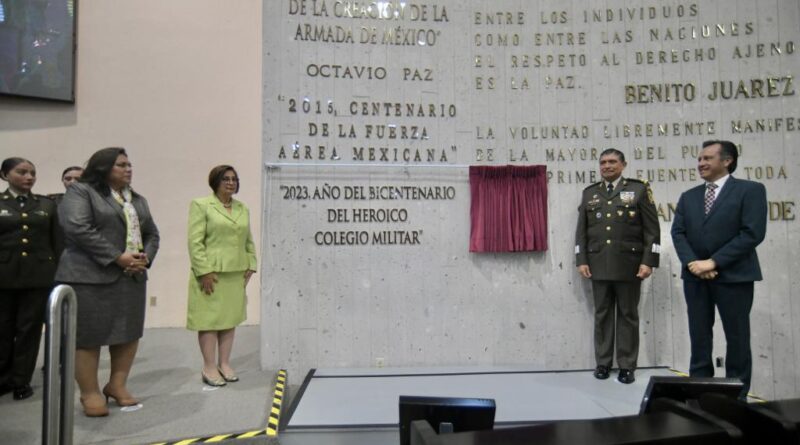 Acompañado por las titulares de los poderes Legislativo y Judicial, diputada Margarita Corro Mendoza y magistrada Lisbeth Aurelia Jiménez Aguirre, el Gobernador procedió a develar la inscripción 2023: año del bicentenario del Heroico Colegio Militar, así como a entregar un reconocimiento a la noble institución creada en 1823 por el entonces ministro de Guerra y Marina, José Joaquín de Herrera.
