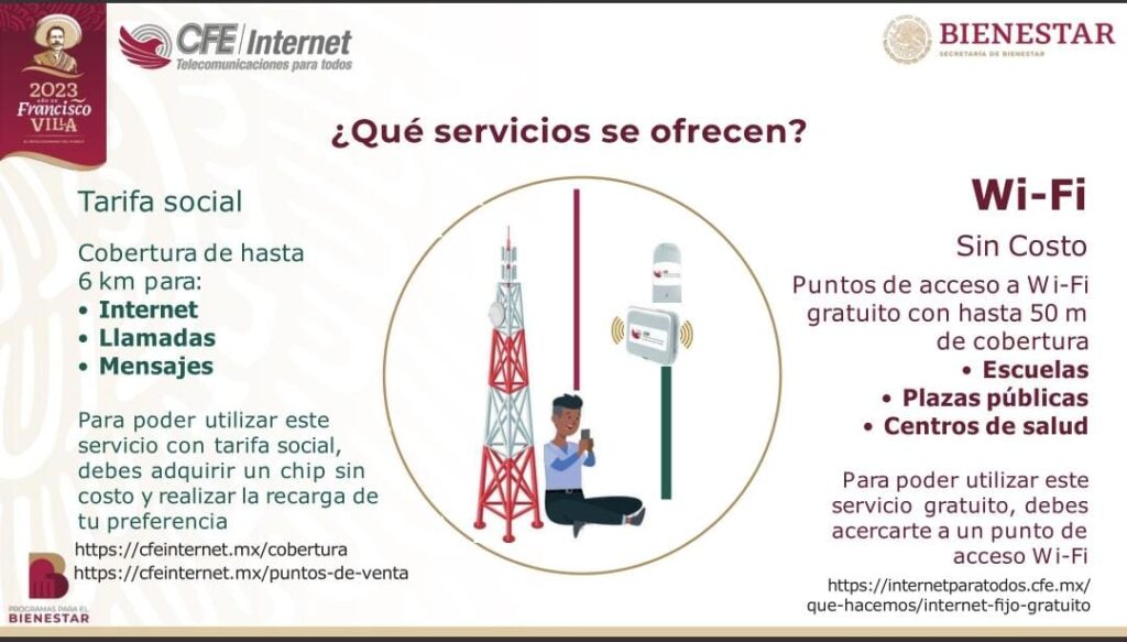 El programa del Gobierno de México, “Internet para el Bienestar” que proveerá de telefonía e internet a la mayoría de los mexicanos a través de la Comisión Federal de Electricidad, tiene una proyección de alcance a 113 millones de usuarios que podrán acceder a este servicio a menor costo y con mayor conectividad; en las próximas semanas se repartirán de manera gratuita alrededor de 15 mil chips SIM a los beneficiarios de programas sociales en comunidades rurales.