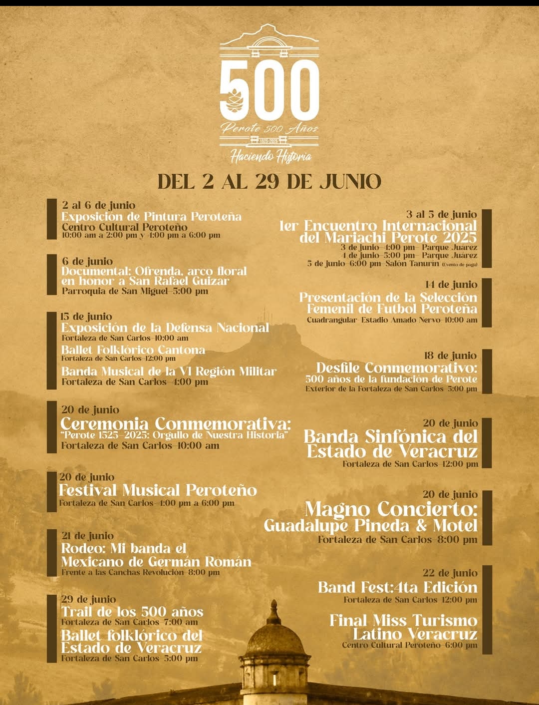 ✅ El Ayuntamiento de Perote te invita a ser parte de esta histórica conmemoración de nuestro medio milenio.