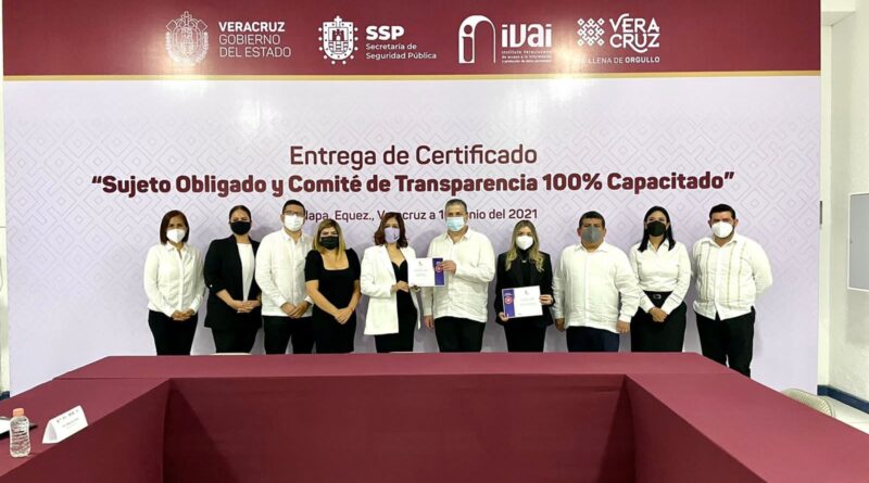 Xalapa, Ver., 10 de junio de 2021.- Con el objetivo de fortalecer la cultura de transparencia y rendición de cuentas, la Secretaría de Seguridad Pública (SSP) cumplimentó el proceso de certificación realizado por el Instituto Veracruzano de Acceso a la Información y Protección de Datos Personales (IVAI).