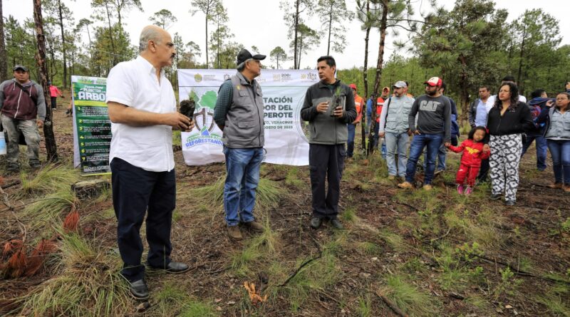 Perote, Ver.- El presidente municipal Ricardo Ahued Bardahuil asistió a la jornada de reforestación que se realizó este domingo en el Ejido Sierra de Agua, Perote, como parte de la iniciativa “Fabriquemos Agua Reforestando”.