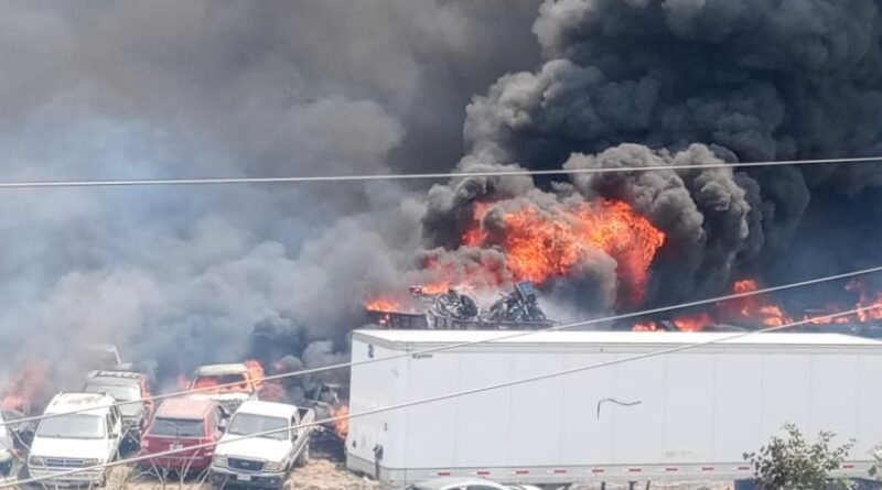 Sofocado incendio en corralón sobre carretera en Rinconada