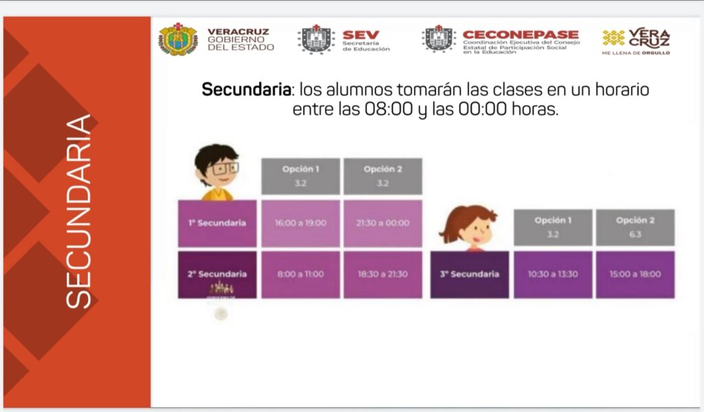 Señaló que los canales y horarios que proporcionó la SEV para llevar a cabo las clases en linea se te presentan en esta información para conocimiento de aquellos que aún tengan duda.