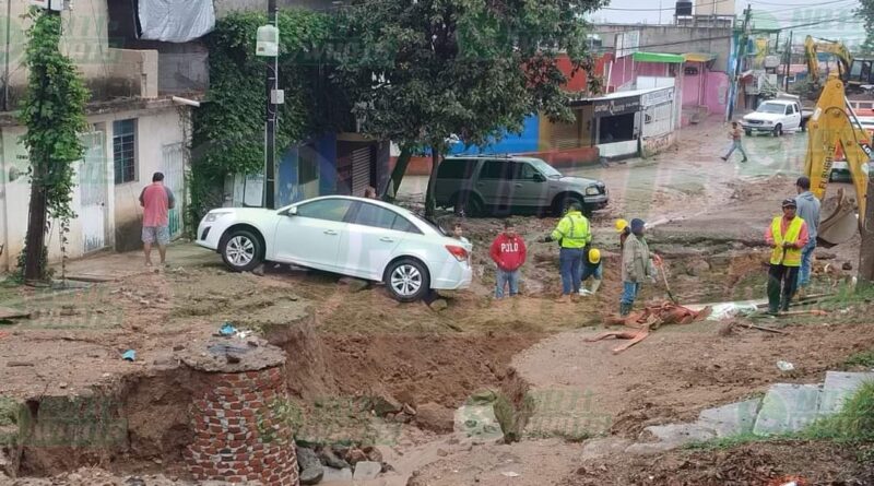 Debido a las lluvias presentadas por la Tormenta Tropical Alberto, en la calle Río Tecolutla de la colonia Carolino Anaya se reportó un deslave por lo que dos vehículos se vieron afectados.