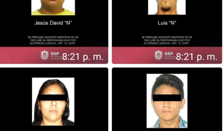 Coatzacoalcos, Ver., 5 de julio de 2021.- Por presuntos ultrajes a la autoridad, robo a negocios y portación ilegal de arma de fuego fueron detenidos Jorge Luis “N”, Jesús David “N”, Luis “N” y Génesis “N”, presuntos integrantes de una banda implicada en ataques incendiarios contra negocios en esta ciudad.