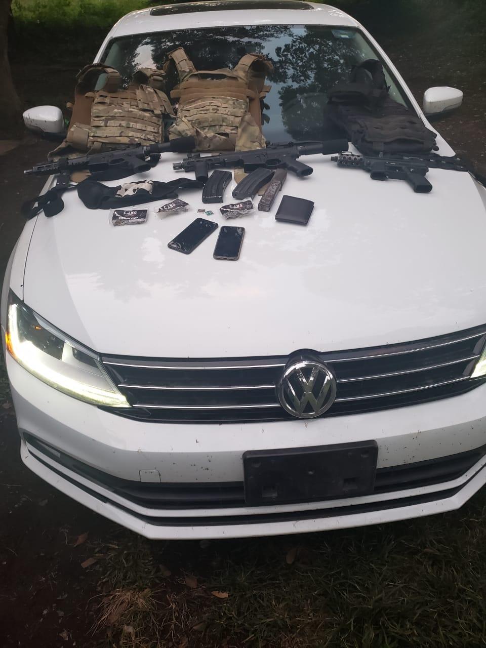 Los arrestados en el operativo fueron Kevin “N” de 18 años; Julio César “N” de 22 y Moisés “N” de 25; y se decomisaron dos armas largas sin marcas ni matrículas y cada una con un cargador abastecido de 27 cartuchos, calibre 2.23; un arma larga marca Intratec, modelo tec-9, calibre 9 mm, con matrícula 06299 y con un cargador abastecido de 21 cartuchos, calibre 9 mm.