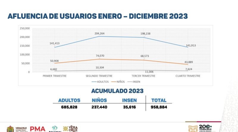 Xalapa, Ver., 02 de enero del 2024.- El primer año bajo la administración honesta y transparente de la Cuarta Transformación, el Aquarium de Veracruz registró ingresos por 125 millones 432 mil 355 pesos y una cifra récord de 958 mil 884 visitantes, cifra que no se presentaba desde el 2007.