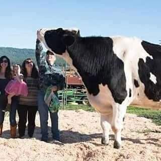 Daniel el novillo Holstein es de 6 pies 4 pulgadas de alto y pesa una friolera 2.300 libras. Su dueño Ken Farley dijo que Daniel tiene tanto apetito que puede comer 100 libras de heno, 15 libras de grano y bebe 100 galones de agua todos los días.