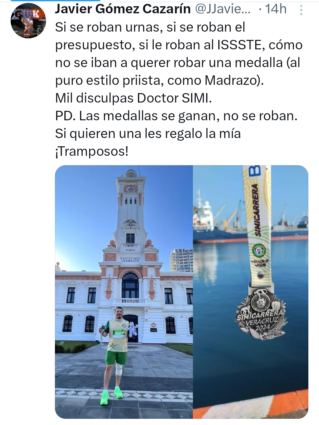 Gómez Cazarín triunfa en carrera Simi y expone falsedad de medallas presumidas por Clan Yunes Linares