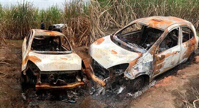 Germán Méndez Rodríguez / Lerdo de Tejada, Ver. – Los restos calcinados de una persona fueron hallados dentro de un supuesto taxi, incendiado en medio de un cañal ubicado sobre el camino que comunica a la localidad de Zamora Caletón con la subestación de la CFE en Lerdo de Tejada.