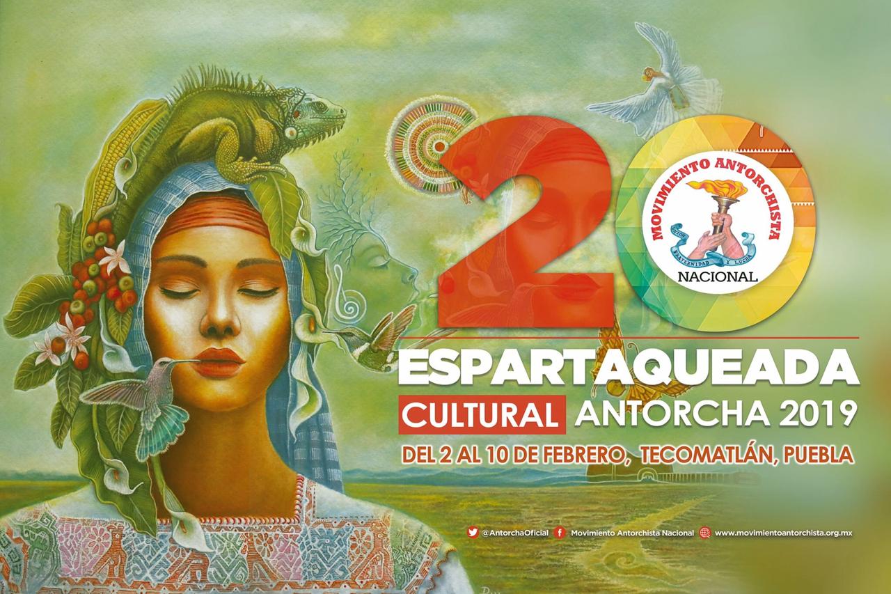 El Movimiento Antorchista convoca a la XX Espartaqueada Cultural Nacional 2019 que se realizará del 2 al 10 de febrero en Tecomatlán, Puebla. Participarán más de 20 mil artistas de todo el país. Información completa en www.movimientoantorchista.org.mx