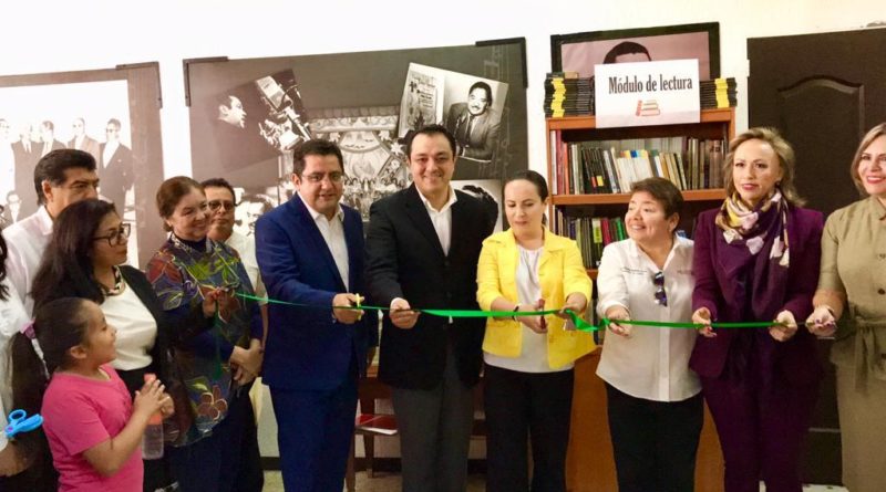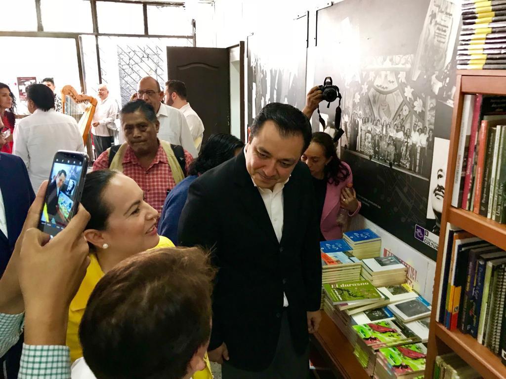 En el lobby del edificio del CDE ubicado en la Avenida Ruiz Cortines, acompañado de la periodista Yamiri Rodríguez Madrid y de funcionarios partidistas, se cortó el listón inaugural de este módulo que pudo concretarse gracias a donaciones del acervo bibliográfico.
