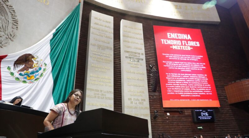 • Enedina Tenorio Flores, hablante de mixteco, habló ante el Pleno de la Cámara de Diputados