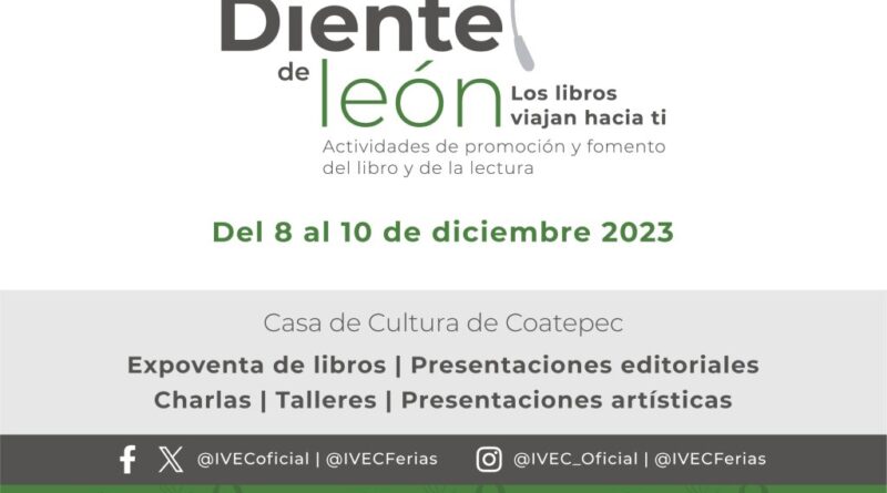 El Instituto Veracruzano de la Cultura invita a disfrutar de la cuarta edición del festival Diente de león. Los libros viajan hacia ti. El programa está compuesto por presentaciones editoriales, charlas, talleres, presentaciones artísticas y una expoventa de libros con más de 150 sellos editoriales, actividades que se llevarán a cabo del 8 al 10 de diciembre, de 11:00 a 20:00 horas, en la Casa de Cultura de Coatepec. La entrada es gratuita.