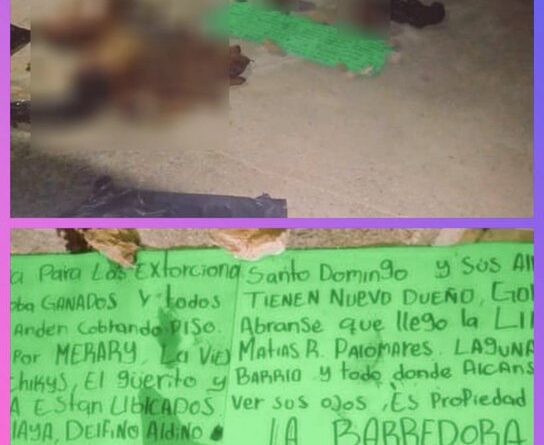 A un costado de los restos de los cadáveres se encontraba tirada una cartulina con un mensaje firmado por un grupo denominado «La Barredora» en donde le dan aviso a grupos de rivales de que la plaza ya tiene dueño.