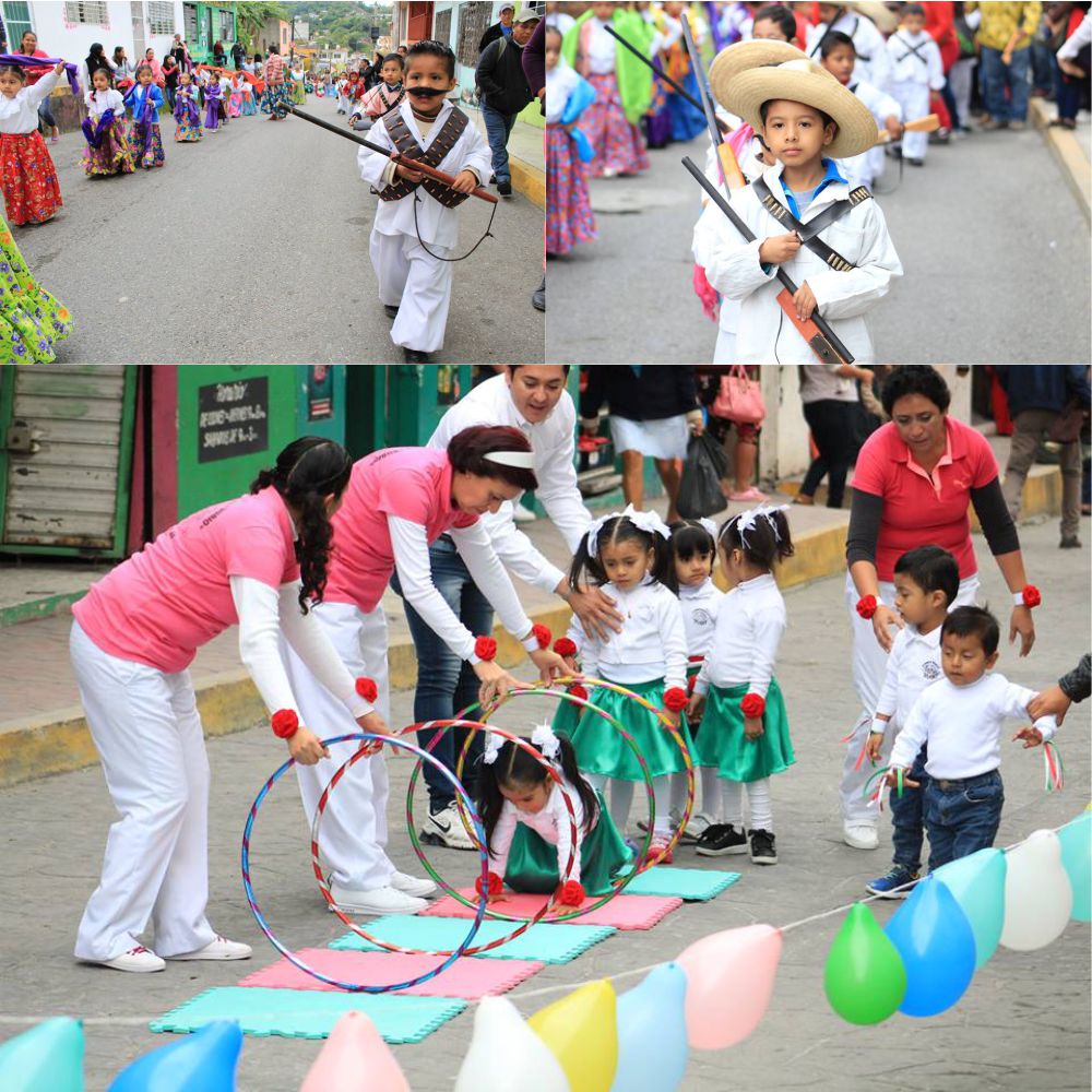 El alcalde Mariano Romero González, presidió el Desfile Infantil que el Sistema DIF Municipal organizó para conmemorar el CVIII Aniversario de la Revolución Mexicana, donde participaron decenas de preescolares y estancias infantiles, llenando de colorido las principales calles de esta ciudad.