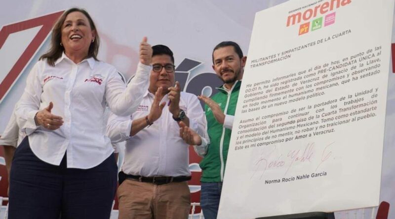 Durante el acto se realizó la firma simbólica de su registro como precandidata única a la gubernatura del estado, reafirmando su compromiso con la continuidad de la cuarta transformación en Veracruz.