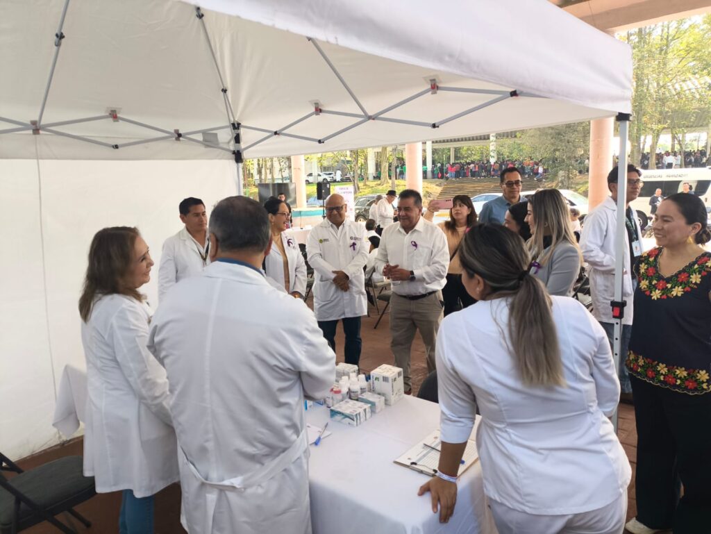 Tras el acto inaugural, el presidente municipal realizó un recorrido por los módulos de atención acompañado por el Director de Salud Pública Municipal, José Guadalupe Meneses Reyes; la Síndica Única, Estefanía Cruz Morales; y la Regidora Primera, Miriam Lagunes Marín, supervisando los servicios brindados en las áreas de medicina general, psicología, nutrición, enfermería, odontología y quiropráctica.