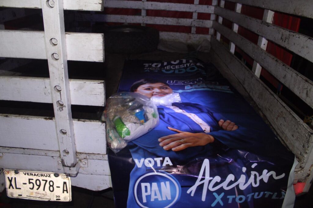 Los hechos se dieron en la calle principal de Mata de Indio, donde los quejosos ubicaron a vehículos sospechosos, a quienes después de un tiempo los detuvieron, al darse cuenta que dentro de los dos vehículos venían parte de la plantilla de la candidata a la presidencia por el PAN, Leonor López Barradas, hicieron una llamada a las autoridades.