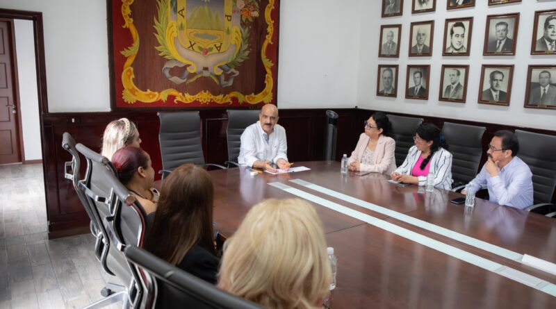 Xalapa, Ver.- El presidente municipal Ricardo Ahued Bardahuil se reunió con integrantes de la agrupación Comercio Unidos de Xalapa, con quienes dialogó sobre diversas iniciativas relacionadas con la regulación de la imagen urbana en el Centro Histórico, el abasto de agua y la vialidad.