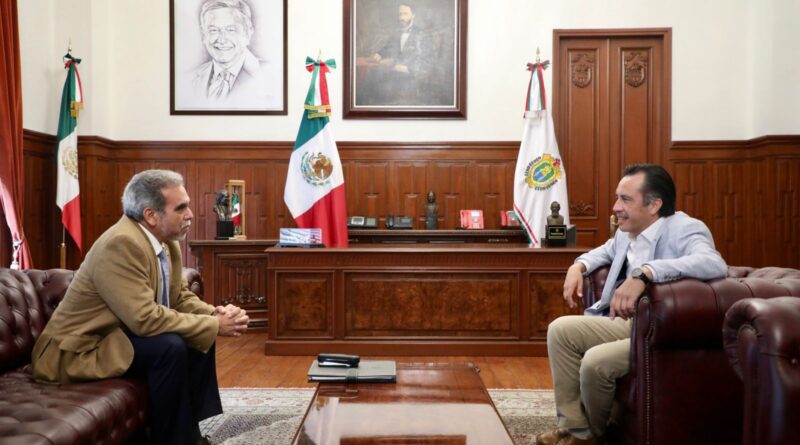 Xalapa, Ver. 14/09/2021.- Este martes, se dio el primer encuentro entre el recién nombrado Rector de la Universidad Veracruzana (UV), Martín Gerardo Aguilar Sánchez y el gobernador Cuitláhuac García Jiménez, este último reiteró todo el respaldo institucional de su Administración hacia la máxima casa de estudios para trabajar por el bien de la comunidad universitaria.