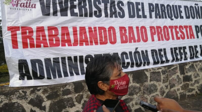 Xalapa Ver.- 12 de julio de 2021. Viveristas del Parque Doña Falla de ésta capital tomaron las instalaciones de éste centro de recreación y trabajando bajo protesta para exigir al Secretario de Desarrollo Agropecuario Rural y Pesca (Sedarpa), Evaristo Ovando Ramírez, la destitución de Silvestre López Paniagua, jefe de Hortalizas de dicha dependencia y responsable de dicho parque.