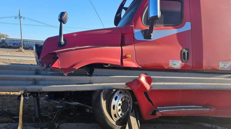Esta mañana de viernes 22 de diciembre un tráiler quedó impactado en la valla metálica cuando circulaba de Sur a Norte en la carretera internacional 15 tramo fundición Obregón, poco antes de la cervecera.
